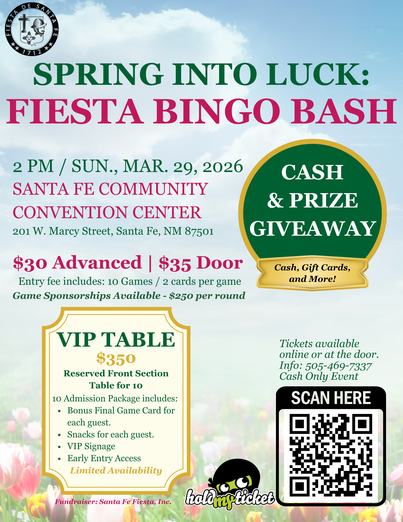 Our Spring Into Luck: Fiesta Bingo Bash brings the community together for a lively afternoon of bingo while supporting Santa Fe Fiesta traditions.